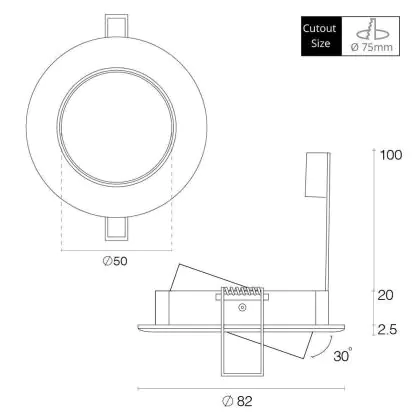 Description Any Lamp Recessed Spot Circular Tiltable White | Cutout 75mm - GU5.3 Socket
