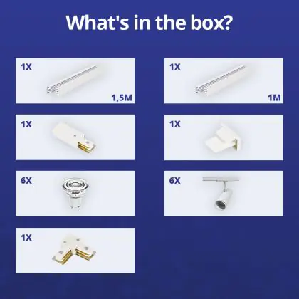 Complete Set 1-Phase Rail L 1 x 1,5 Meter White | incl. 6x Spot + GU10 2700K 3W Dimmable + End Cap, Power Connector and L -Connector