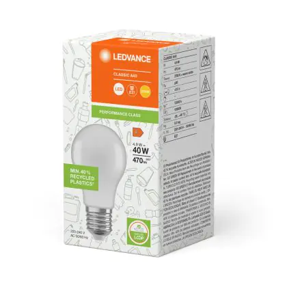 Ledvance Classic LED E27 Pear Frosted 4.9W 470lm - 827 Extra Warm White | Replaces 40W - Recycled