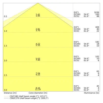 The colour code is a combination of colour rendering (CRI) and light colour (Kelvin). The first number indicates the colour rendering (1 = very poor colour rendering, 9 = maximum colour fastness). The second and third number contains the light colour. Example: the colour code 830 consists of good colour rendering (8) and warm white light (3000K). |