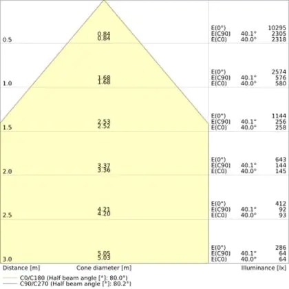 The colour code is a combination of colour rendering (CRI) and light colour (Kelvin). The first number indicates the colour rendering (1 = very poor colour rendering, 9 = maximum colour fastness). The second and third number contains the light colour. Example: the colour code 830 consists of good colour rendering (8) and warm white light (3000K). |
