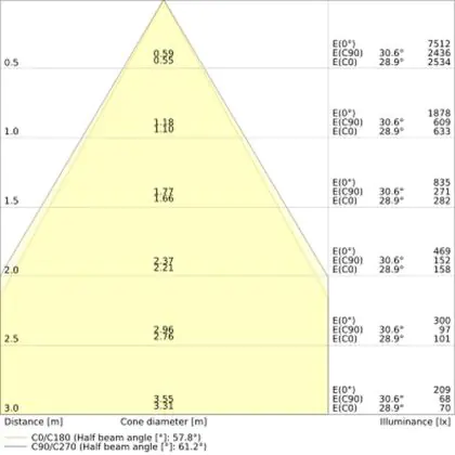 A beam angle indicates the angle of the light beam coming from a light source. The smaller the radiation angle in degrees (D), the narrower the beam angle.