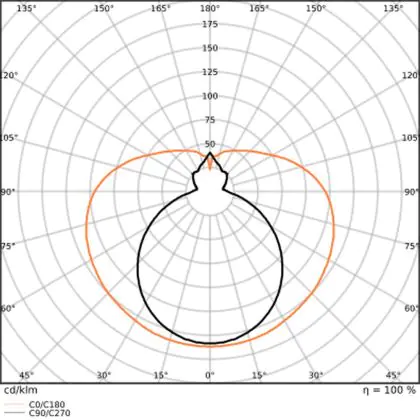 The Luminous Efficacy (lm/W) indicates how efficiently a light source uses energy. We divide the number of lumens by the wattage. The higher the number, the more efficient a product is in terms of energy consumption. LED lighting has a considerably higher lumen/Watt ratio than conventional lighting.