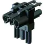 The Wieland T-Splitter is used in order to connect several of the Wieland Connectors and the Wieland PowerCords. It allows you to split the power of a wall socket to supply power to different units.