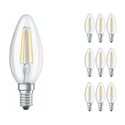 Multipack 10x Ledvance CLASSIC LED E14 Candle Filament Clear 4W 470lm - 827 Extra Warm White | Replaces 40W