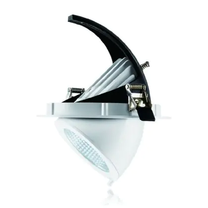 A fixture with a tiltable design makes it possible to direct the lighting specifically at an object or surface. This can play a particularly important role in shops (putting a new collection in the spotlight) or galleries (accentuating works of art). It can also influence the purchasing behaviour or interpretation of visitors.