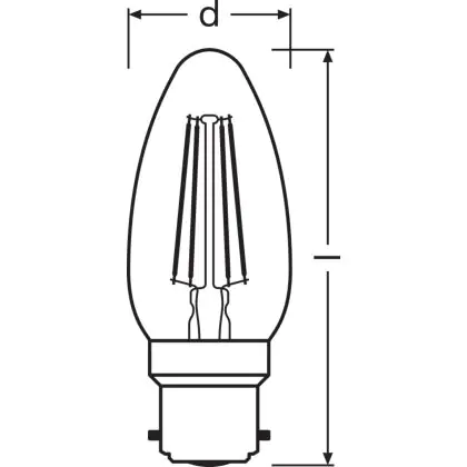 Osram Classic LED B22d Candle Filament Clear 4W 470lm - 827 Extra Warm White | Replaces 40W