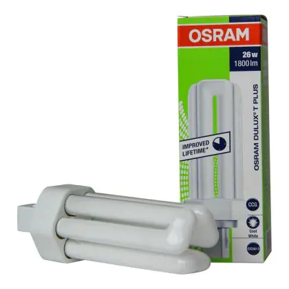 Also, the Osram DULUX T 26W/840 PLUS GX24d-3 Lumilux Cool Whitelifespan is very long, up to 8000 hours. These lamps are also very energy efficient, they have an energy label classified A.
