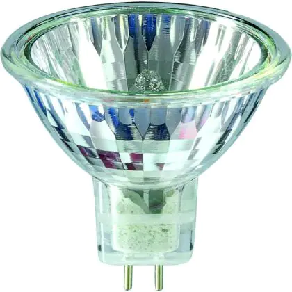 Philips Brilliantline Dichroic are halogen lamps with reflectors. These lamps are composed of a neon filled halogen burner, and of an axial filament in a glass reflector.
