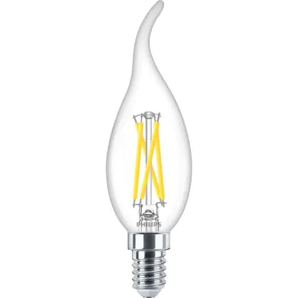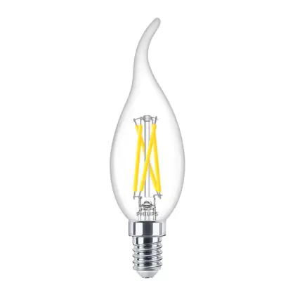 Philips MASTER LED E14 Bent-tip Candle Filament Clear 2.5W 340lm - 922-927 Dim To Warm | Best Colour Rendering - Dimmable - Replaces 25W
