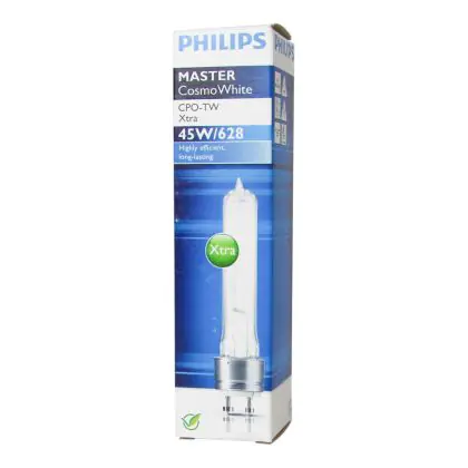 Philips CosmoWhite CPO-TW light bulbs are new generation discharge lamps that provide reliable and economical white light. Their operating cost is very low for a very high efficiency. Master Cosmo White have a compact size and are two times smaller than SON lamps.
