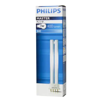 The Master Philips PL-S 4P lamps are part of the fluorescent range with separate power supply. These lamps are compatible with an electronic ballast. Each compact fluorescent lamp of this range has a base type 2G7 with With a colour temperature of 4000K, Their main use is recommended in lighting corridors. Use of Philips PL-S 7W 840 4P