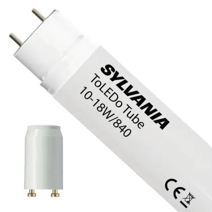 The Sylvania ToLEDo EM T8 V3 10W 840 60cm | Koel Wit - incl. LED Starter - Replaces 18W is the perfect alternative to a standard 18W fluorescent tube in lighting fixtures with Conventional (EM) ballast. With this LED tube you are guaranteed a long life and 5 years Any-Lamp warranty. When you switch to LED tubes, it is important that you check the length and wattage of your current fluorescent lamp. This 24W LED TL is the replacement for a conventional 18W fluorescent tube with a length of 600mm. This TL saves up to about 70% energy costs compared to a standard fluorescent tube.